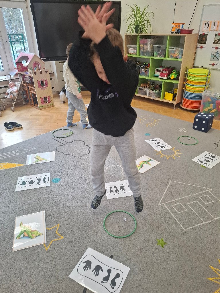 - Doskonalenie umiejętności matematycznych: dostrzeganie rytmów, samodzielne układanie rytmów; odtwarzanie rytmów za pomocą ruchu; uzupełnianie brakujących elementów w układach rytmicznych.