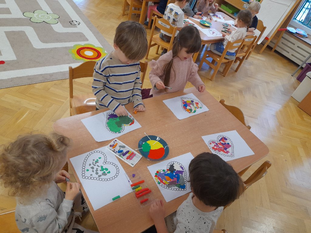 - zapoznanie z kolorami podstawowymi i pochodnymi;