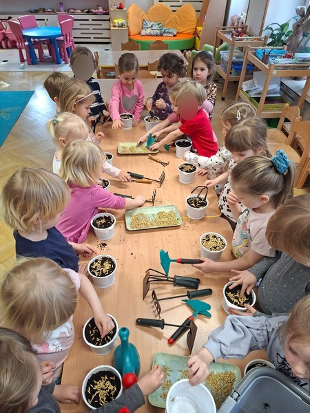 - poznanie nazw wiosennych kwiatów, utrwalanie wiedzy dotyczącej wzrostu roślin (z nasion lub cebulek), rozwijanie postawy odpowiedzialności za hodowaną roślinę;