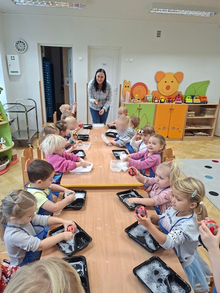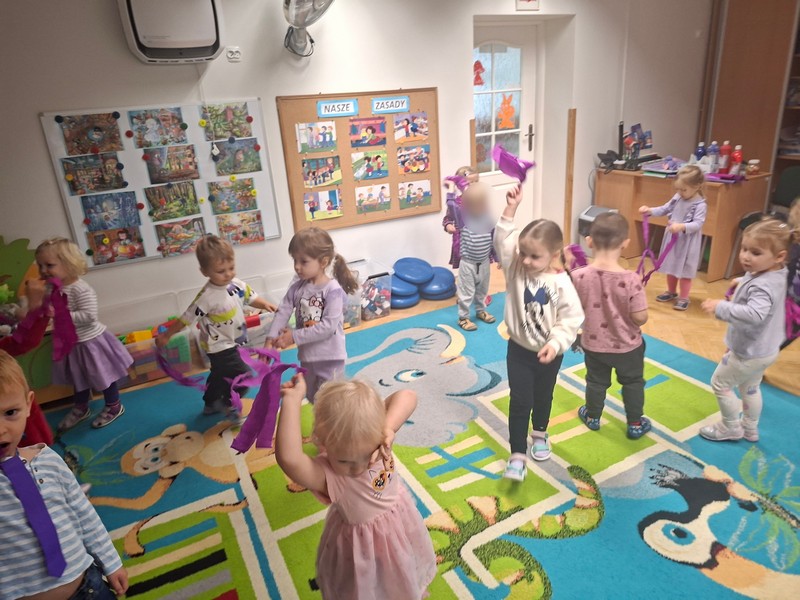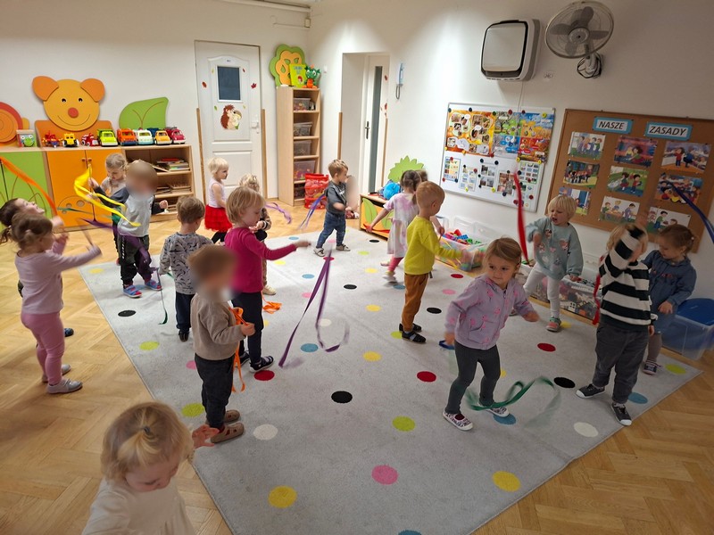 - nabywanie płynności ruchów rąk (np. w toku swobodnych ruchów tanecznych, gimnastycznych ćwiczeń ramion, zadań plastycznych wymagających zamalowania dużych przestrzeni kartki);