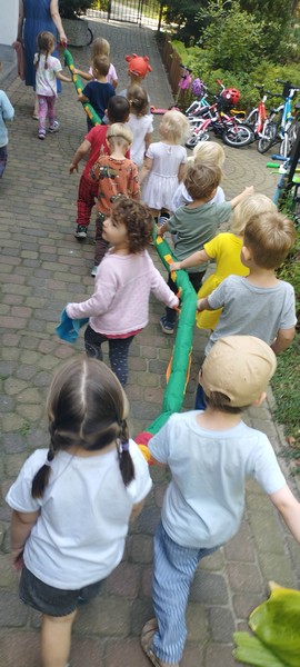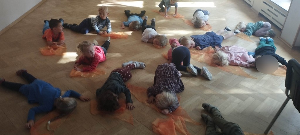 - naśladowanie ruchów wykonywanych przez nauczyciela, odtwarzanie ruchem całego ciała,