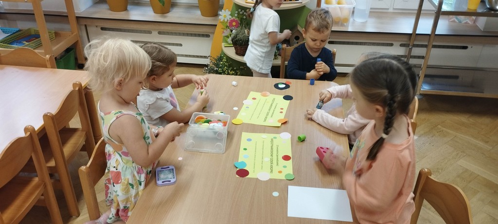 - nabywanie sprawności manualnej (poprzez wykonywanie czynności wymagających zaangażowania mięśni dłoni, np. lepienie prostych kształtów z plasteliny, zgniatanie i zaginanie papieru),