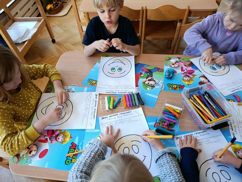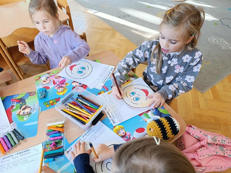 - Wypowiadanie się na swój temat: wygląd, zainteresowania, ulubione zabawy itp. Doskonalenie orientacji w schemacie ciała (strona prawa, lewa).