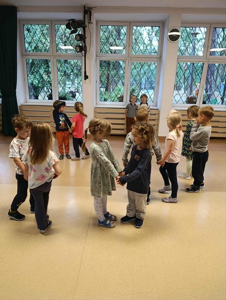 - Zapoznanie z salą i łazienką. Przypomnienie zasad bezpieczeństwa obowiązujących podczas korzystania ze schodów.